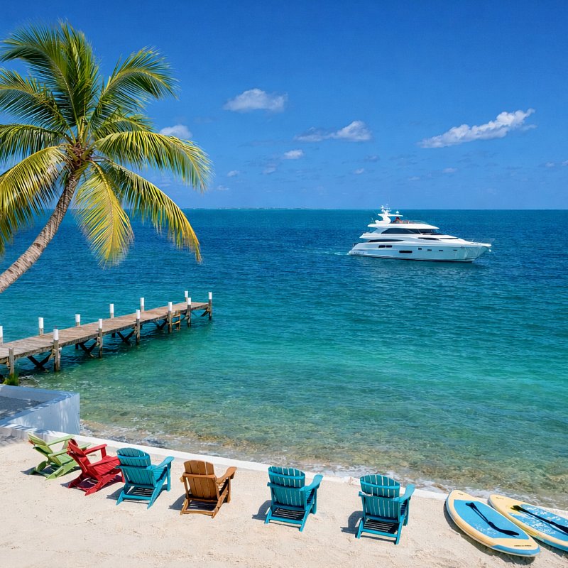 This secluded yet centrally located waterfront home in Marsh Harbour offers beautiful harbour views, a private beach with lounge chairs and paddleboards, dockage, firepit, and outdoor BBQ. Set in a quiet gated enclave, it provides privacy and easy access to downtown and the airport.